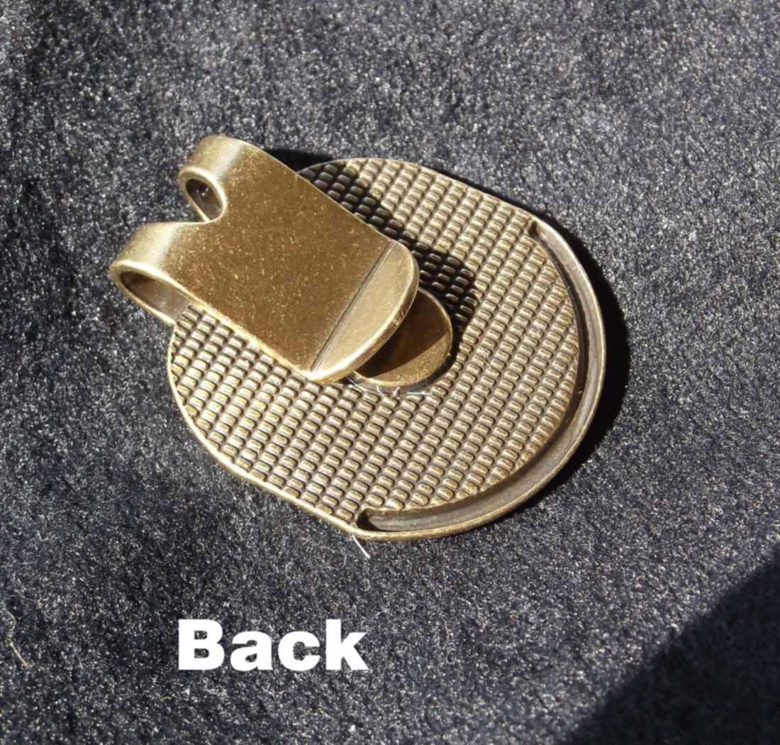 Magnetic golf ball marker that clips onto the bill of your hat. Marker is held on with magnet. The marker comes in gold or silver finish.