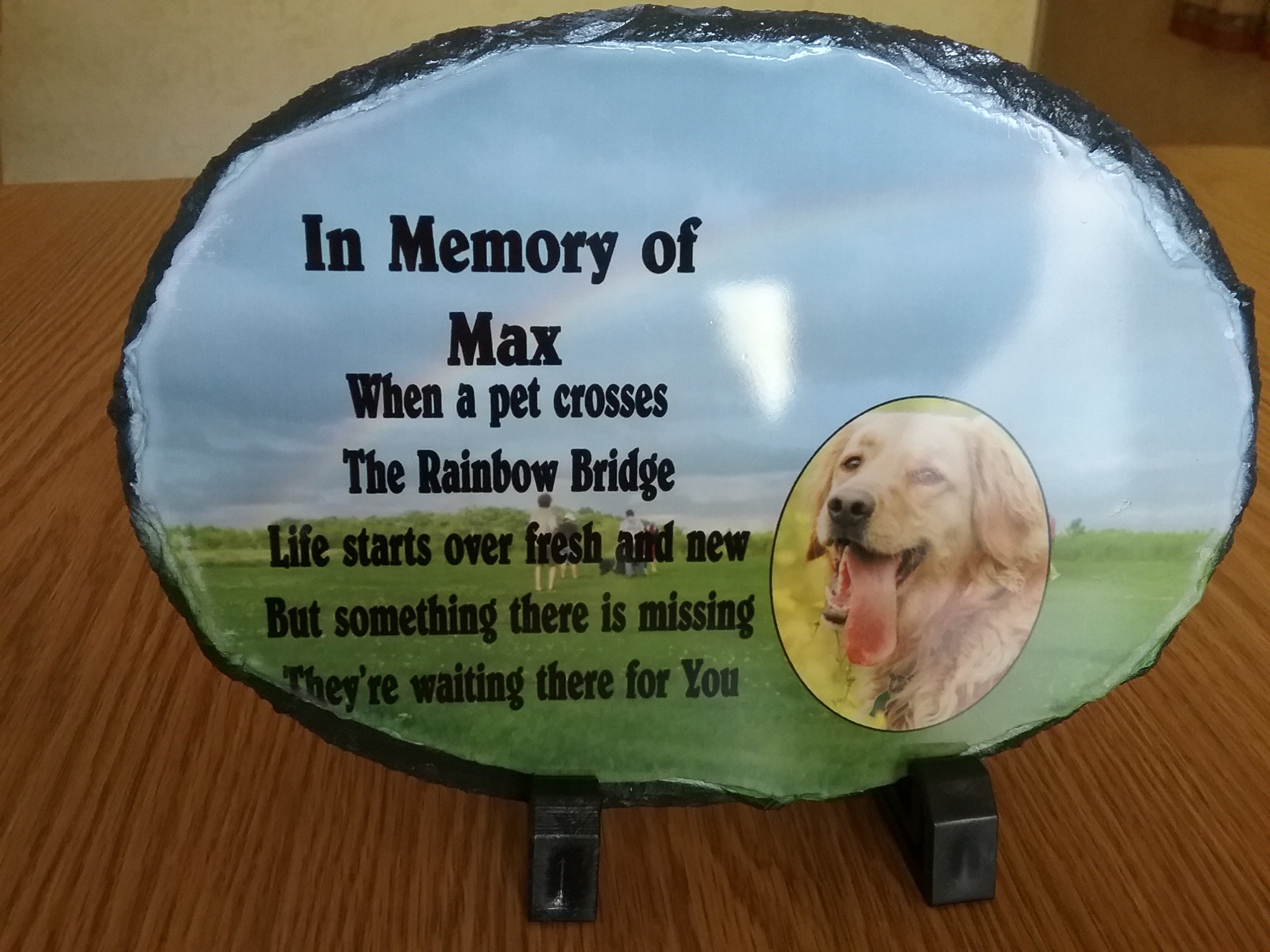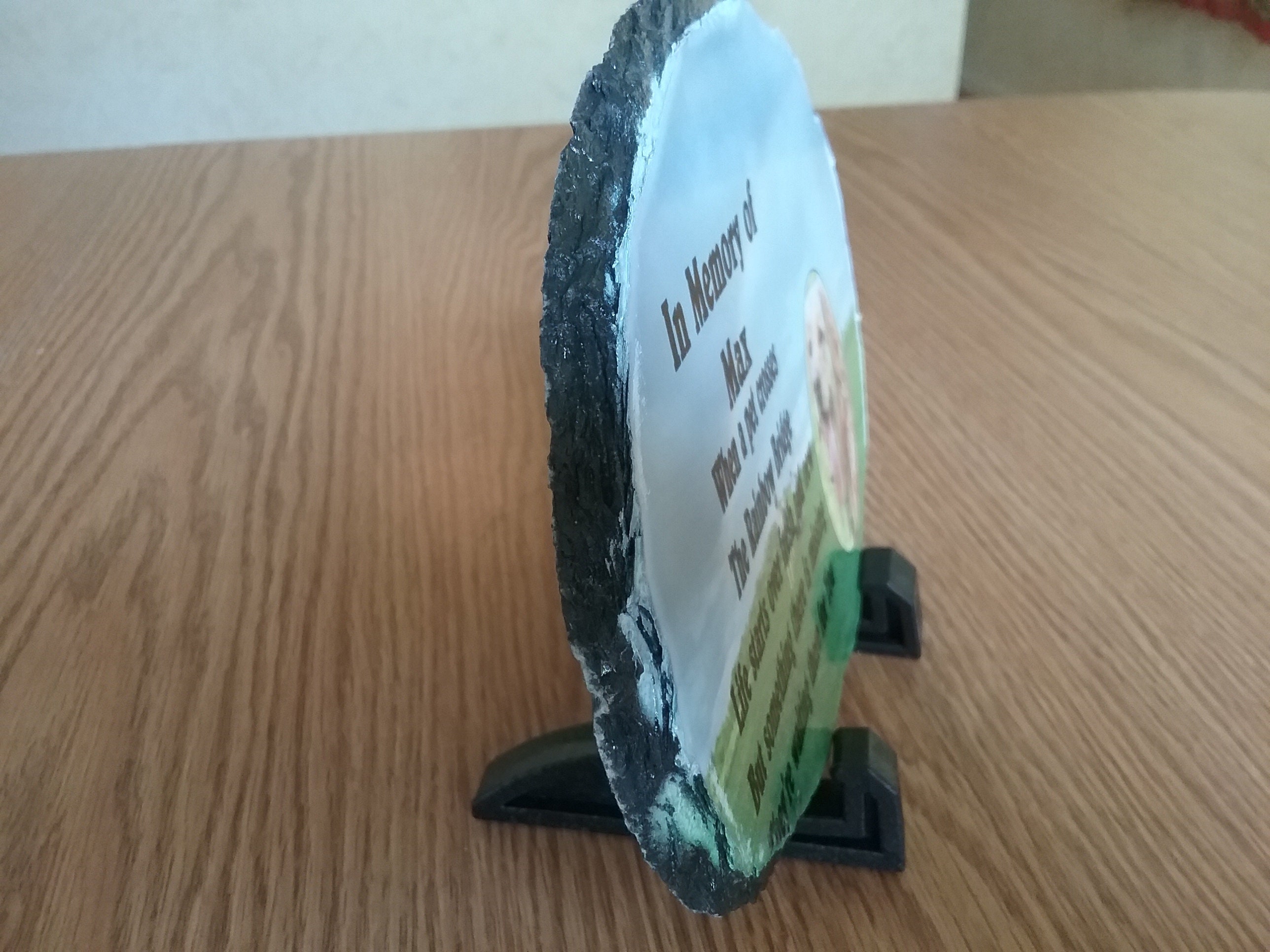 This beautiful stone is printed with dye sublimation ink so it goes into the finish. This means that it will not crack or peel, and resists fading and will provide a nice rememberance for that someone special. We recommend that this be used indoors.